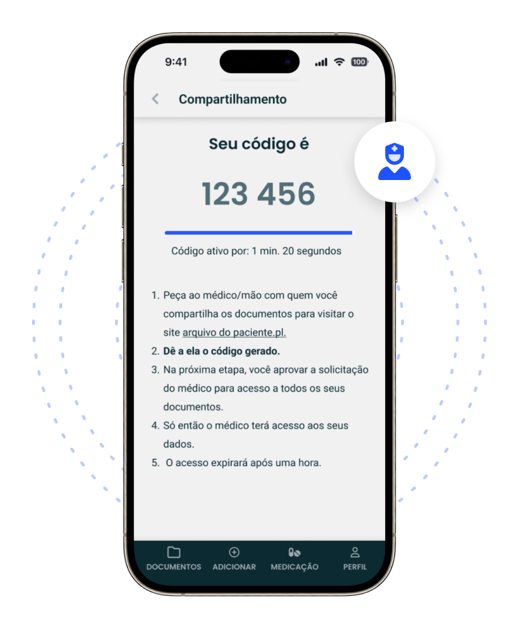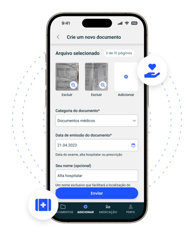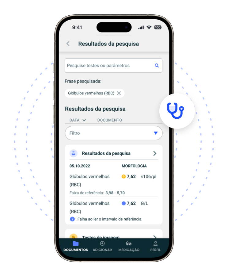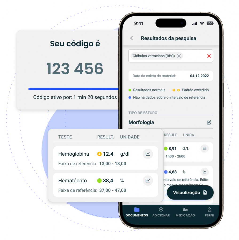 Armazene seus registros médicos em um só lugar e aproveite a possibilidade de compartilhá-los de forma fácil e segura com os médicos